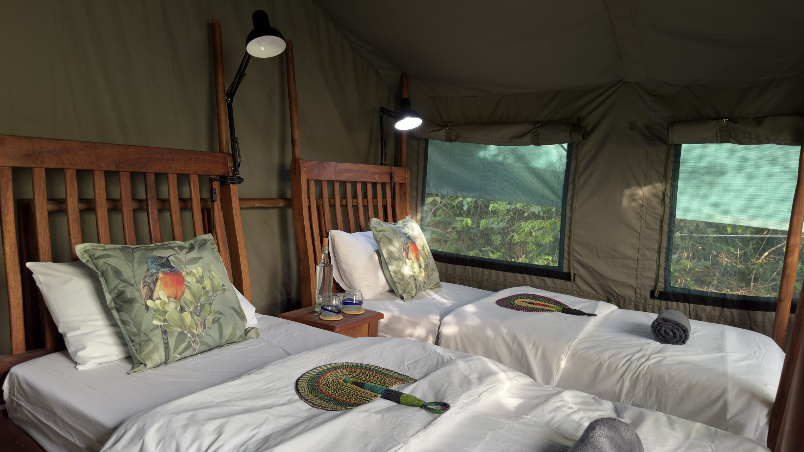 Hemingways Tented Camp provides a classic tented safari experience beside the Nile, where the sounds of hippos, birds, and flowing water create an unforgettable wilderness atmosphere.
